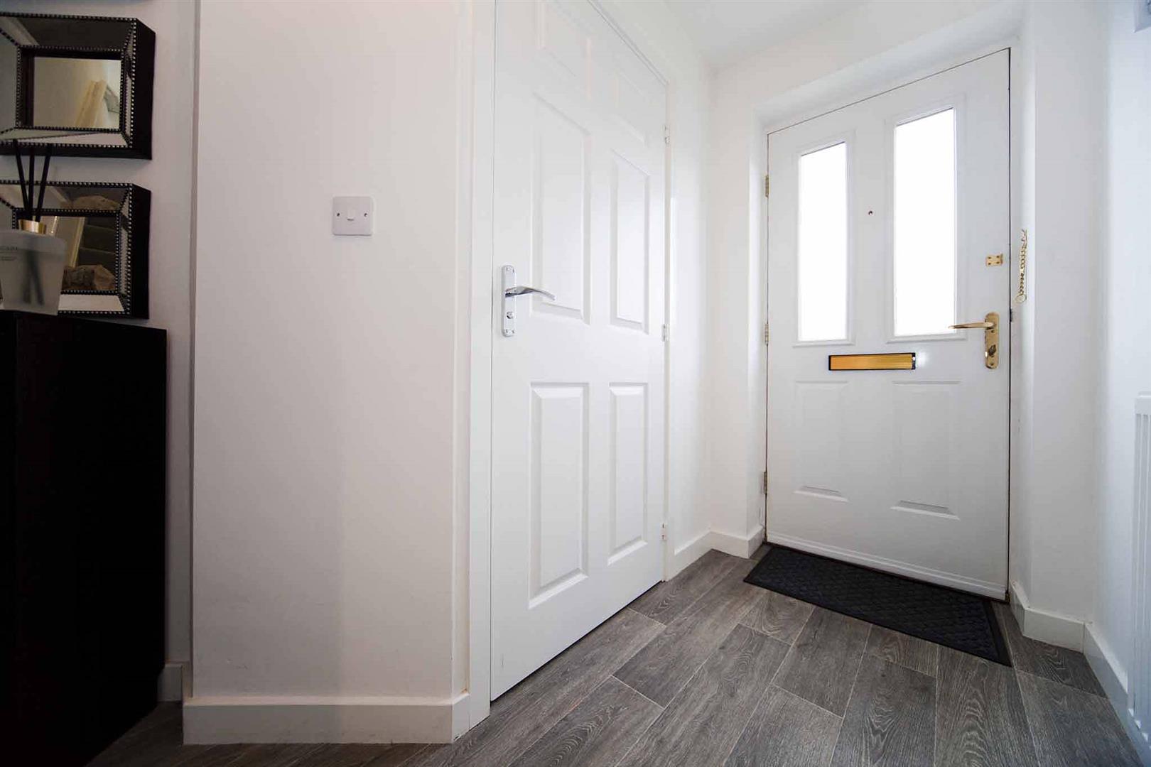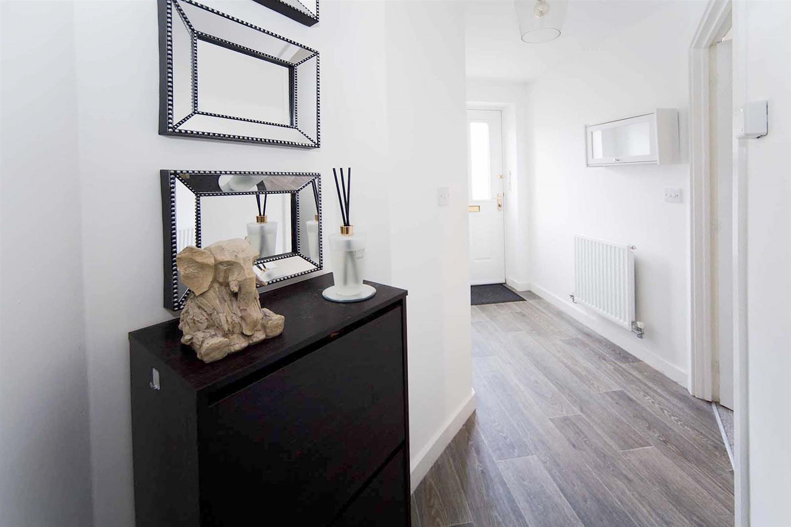 Vestibule entrance with stairs leading to the first floor accommodation, laminate flooring, excellent decor.