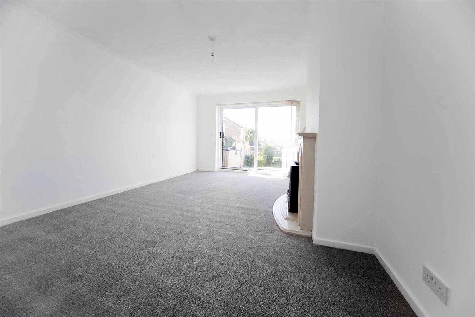 Spacious rear aspect lounge with fire surround and contemporary electric fire, pristine decor, decorative coving, and patio doors which open to the rear garden.