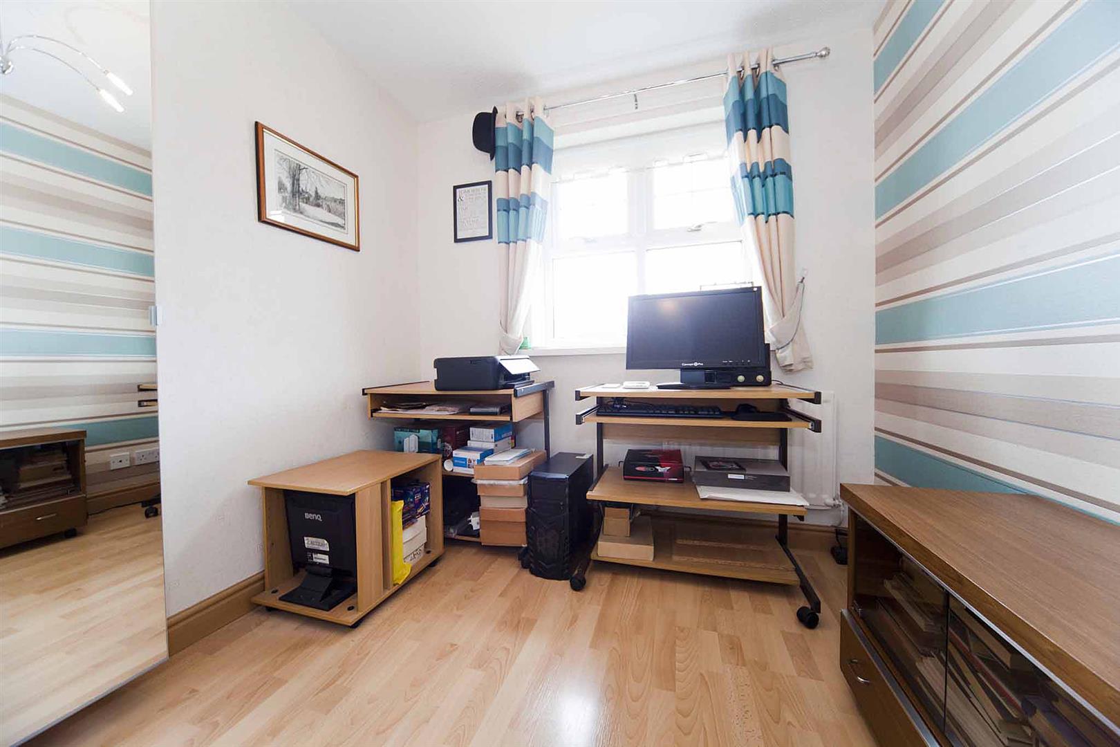 Bedroom three is a good size single room with fitted storage located to the front of the property, modern decor, laminate flooring.