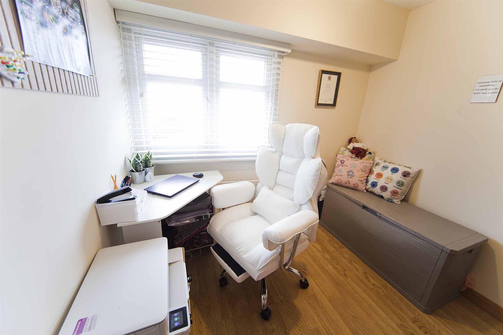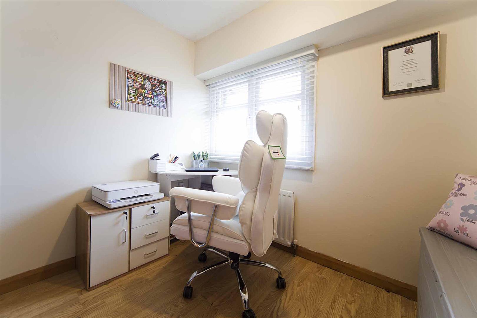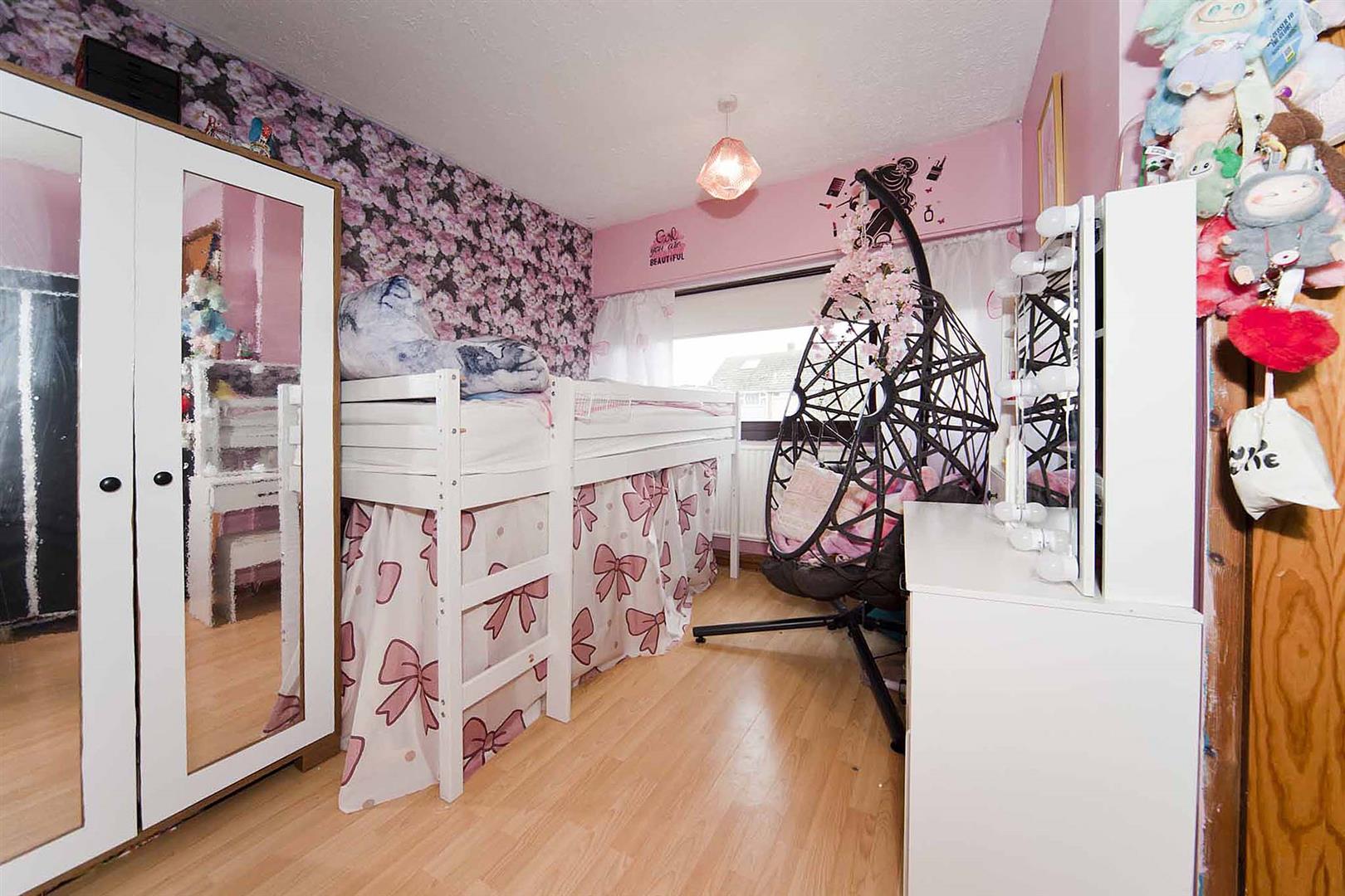 Bedroom three is of single proportions with front elevation window, laminate flooring, neutral decor.