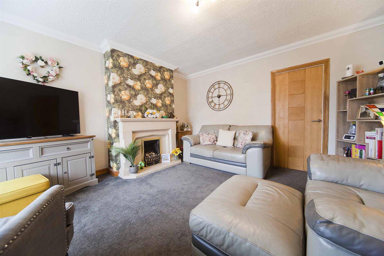 Good size lounge with bow window to the front elevation, tasteful decor, decorative coving, feature fireplace with inset pebble effect gas fire.