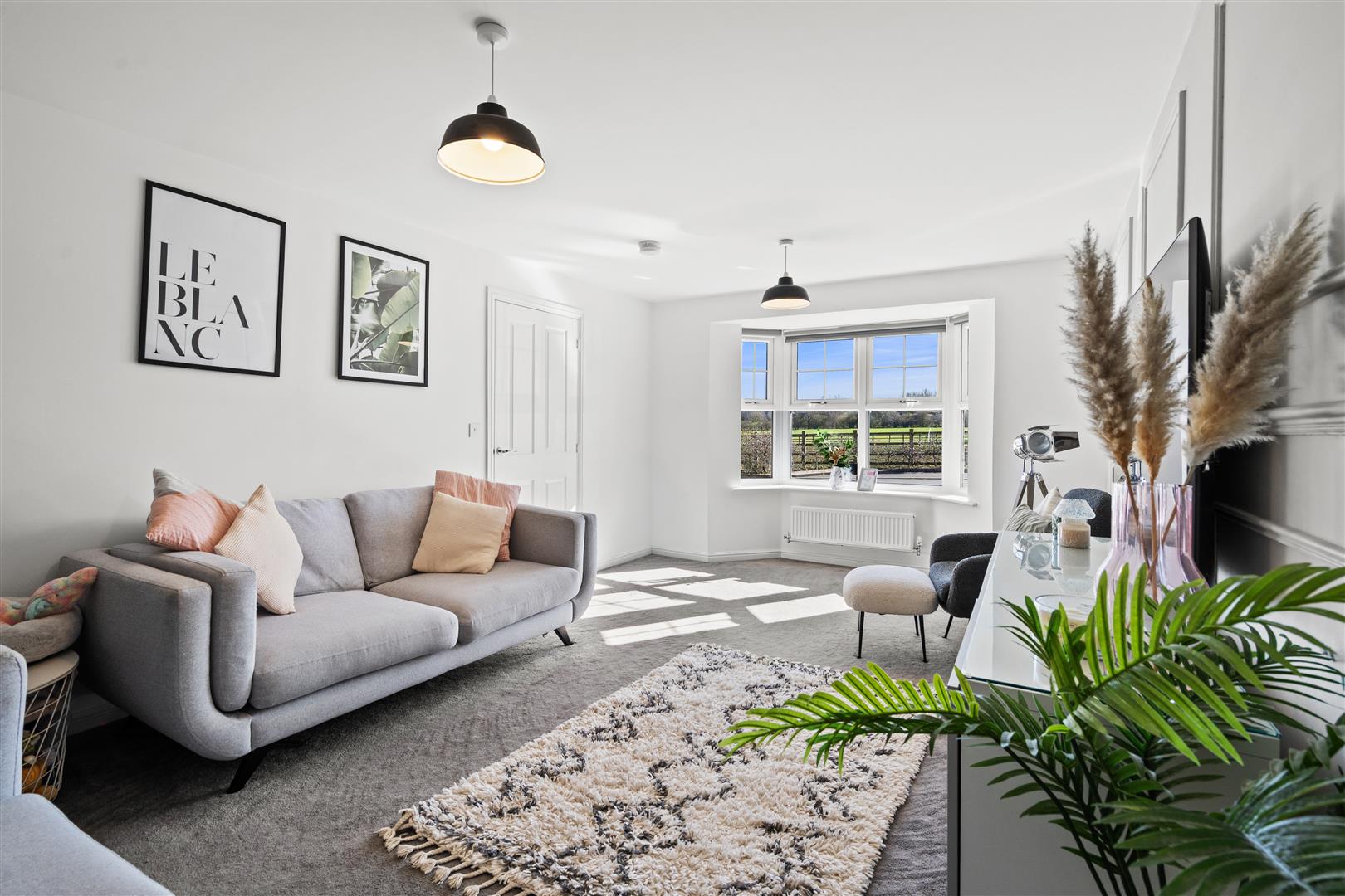 Superb lounge with bay window to the front elevation, bespoke wall panelling, pristine decor.
