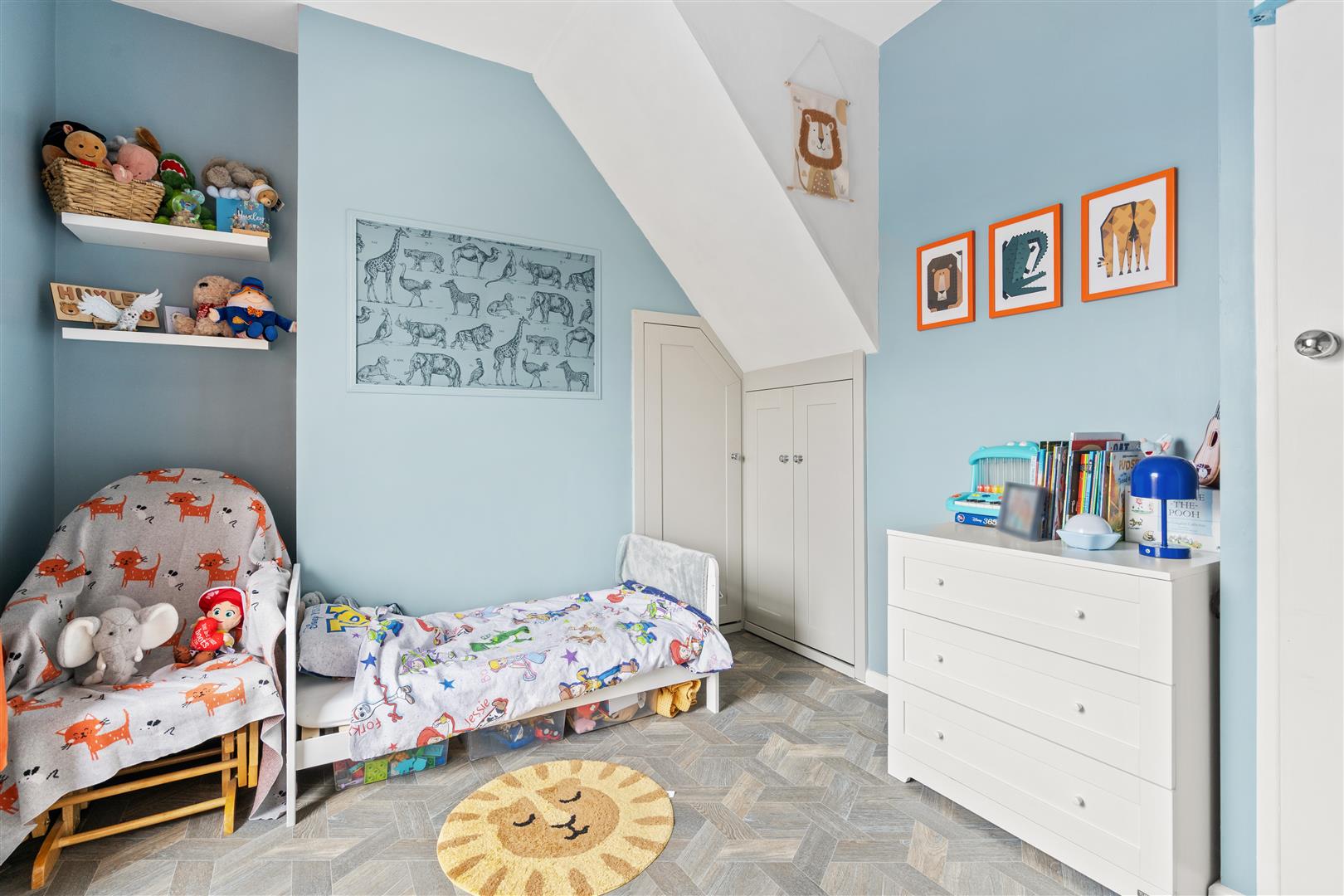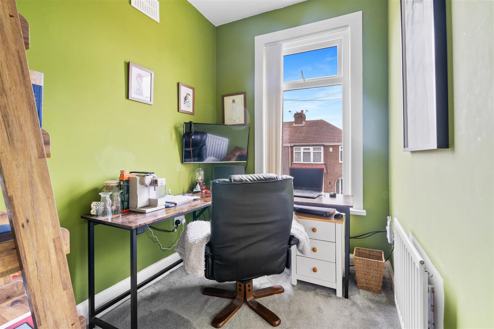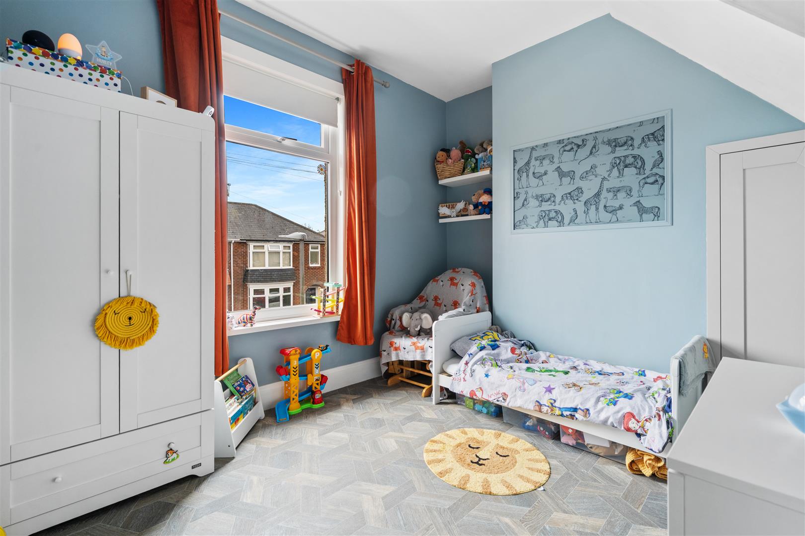 Bedroom three is a good size single with front elevation window, contemporary decor.