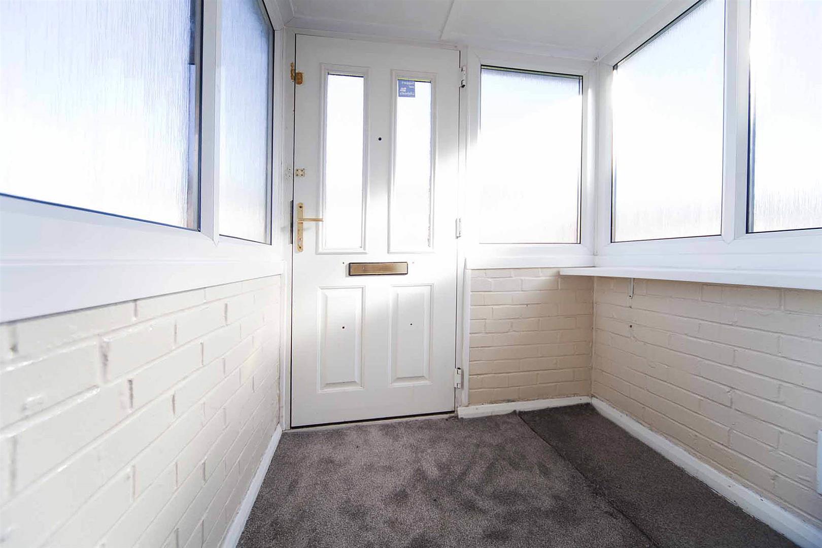 Well presented frontage, lawned garden, established hedging, porch entry.