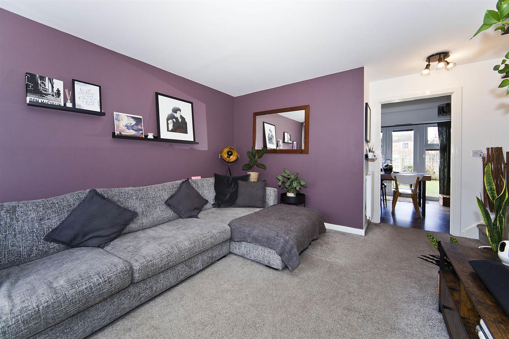 Good size lounge with front elevation window, tiled fireplace with gas fire, decorative coving.