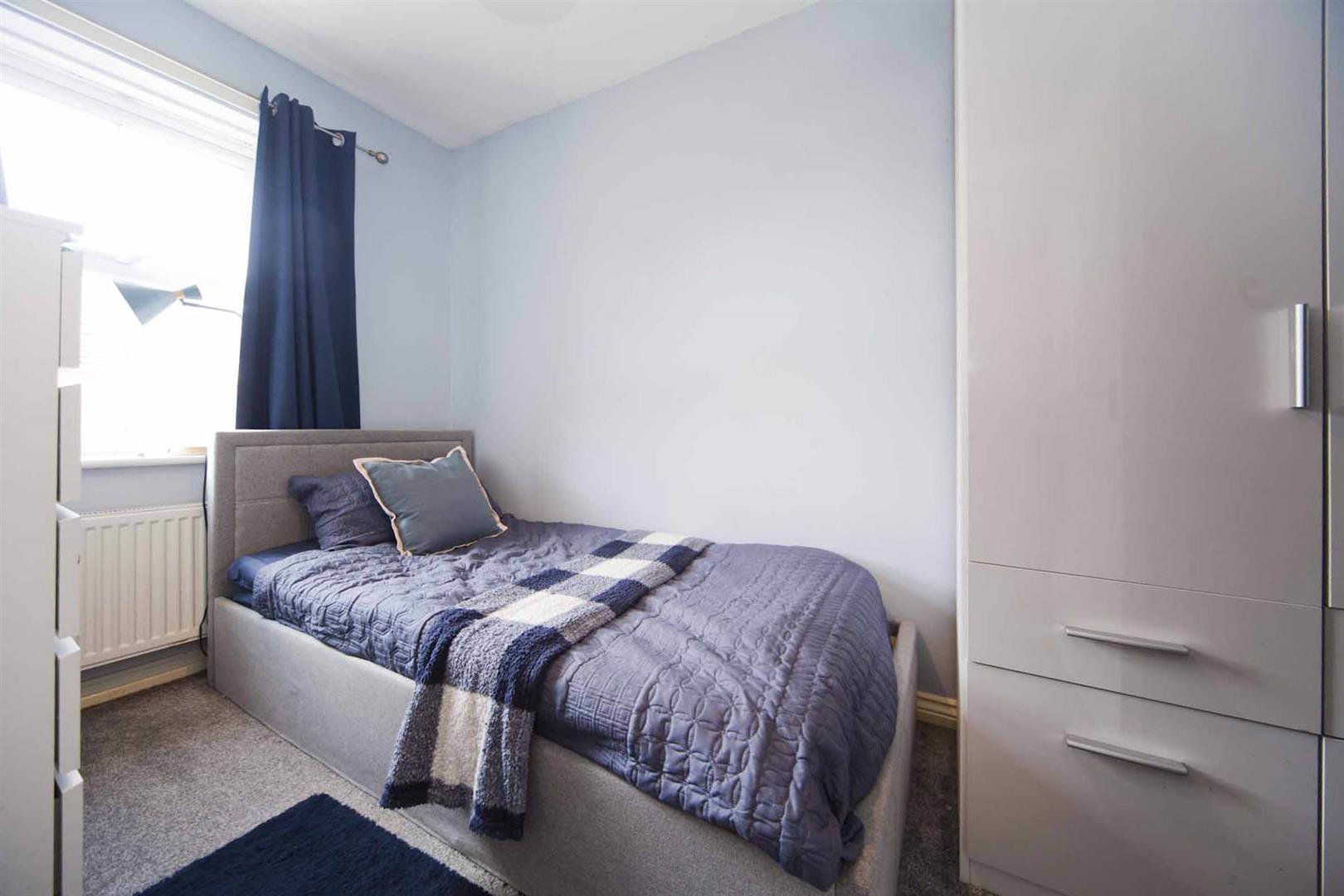 Bedroom three is a further double room with front elevation window, modern decor.