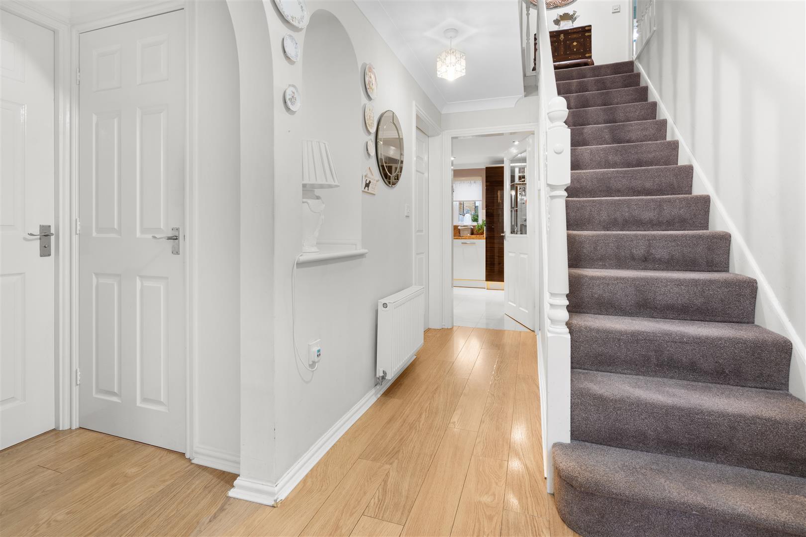 Attractive frontage, excellent corner plot, extensive resin three car driveway to double garage, entrance door into;