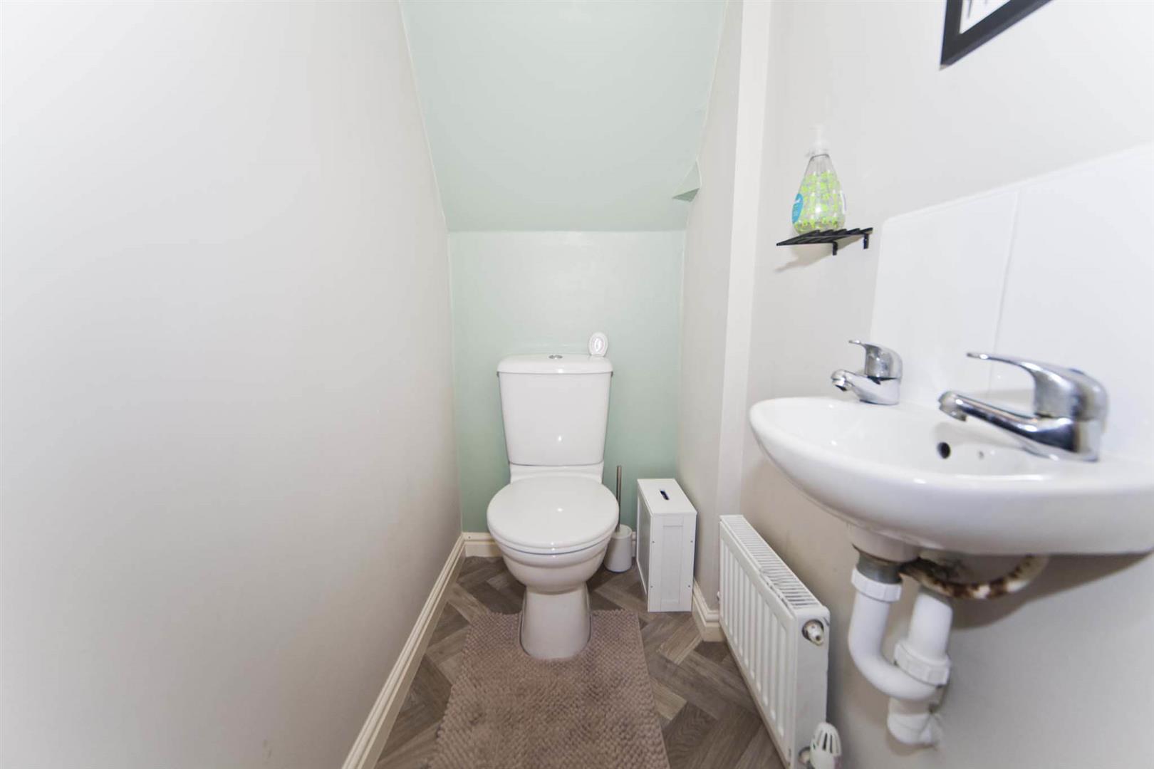 The lounge leads into the hallway, which plays host to the downstairs cloakroom with WC and basin, beautiful wood effect flooring.
