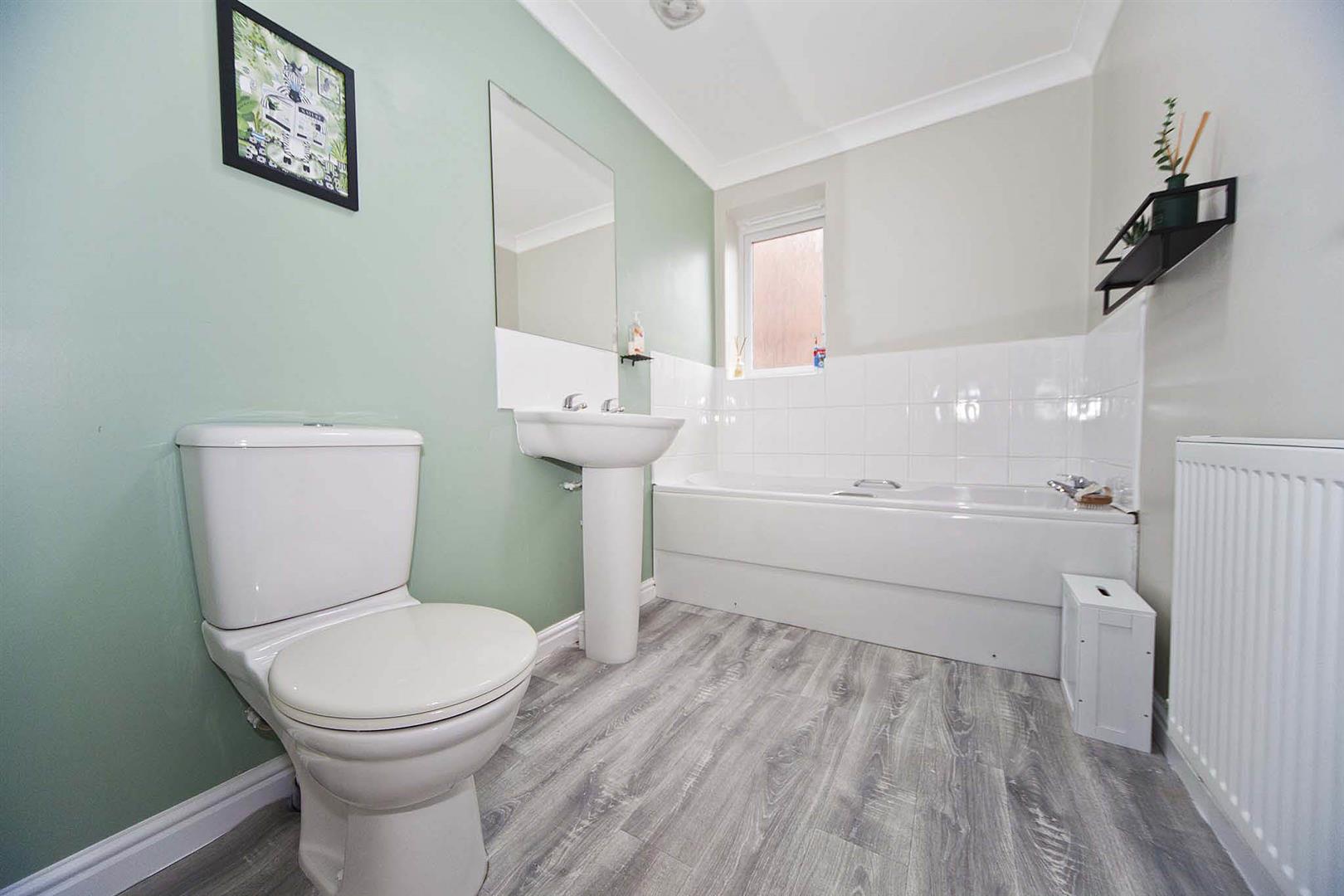 Conveniently placed between the master bedroom and bedroom two is the stunning family bathroom. Here lies a three piece suite comprising of a white panelled bath,with tiling, wash basin and WC, wood effect flooring.