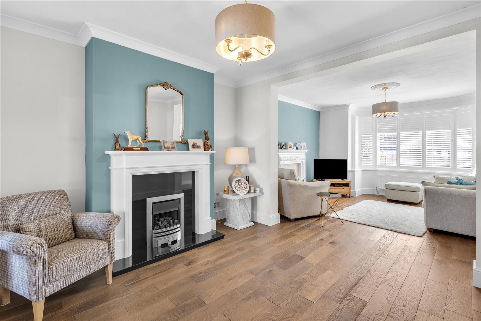 The ground floor comprises a welcoming entrance hall leading to two well-proportioned reception rooms, both tastefully decorated and offering versatile living space. To the rear, a stunning modern kitchen features a range of high-quality fitted units, integrated appliances, and flows seamlessly into a bright dining area—perfect for entertaining and everyday family life.