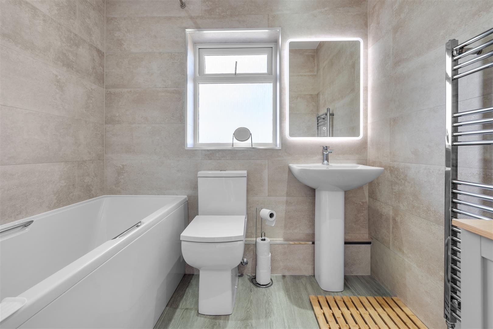 To the first floor, there are three bedrooms, including a spacious master bedroom with fitted wardrobes, a further double bedroom, and a well-sized single room ideal as a nursery, office, or guest space. The accommodation is completed by a contemporary family bathroom finished to a high standard situated behind a stylish sliding door.